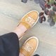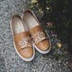 鞋面採用經打蠟處理的水蠟牛皮,質感是雙色感的焦糖棕色