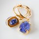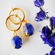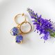 鮮やかなブルーのラークスパーをドライフラワーにして樹脂で閉じ込めたフープデザインのイヤリング。