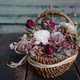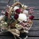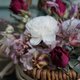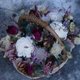 「洋溢著溫柔的氛圍,再加點迷幻的氣息,是現代人在匆忙慌亂的每一天中、期待存在著的靜謐小花園。」 趁著新鮮時倒掛風乾的櫻玫,經過適當時間的乾燥,成了紫紅色的夢幻姿態。以櫻玫為主體,搭配當季盛產的古典藍繡球、粉紅花瓣迸發的新娘花,以及自然地飛舞著枝枒的柳枝,建構出魔幻森林裡的小花園。方便提取的花籃設計,讓花禮的擺放方式多了變化;用拉斐草隨意地在側邊紮起蝴蝶結,將整體作品添增了浪漫氛圍。 | 作品規格 |:長約17公分,寬約13公分,高約17公分
