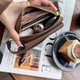 - Mini wallet, short wallet, Mini purse, cow leather, Multi-purpose Zipper Wallet, Zip pouch, Dark Brown