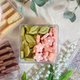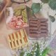 - 法國奶油、日本麵粉、新鮮雞蛋、純糖粉、草莓粉、小柳津抹茶粉