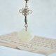 搭配手工製作繞線如意結,用了盡兩個小時時間製作完成。搭配天然翡翠小平安扣,搭配白玉老型珠製作珠扣。