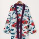 這款半纏採用暖和的毛絨材質,設計靈感來自日本的花卉和浮世繪等元素,