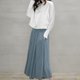 船型領的蝙蝠袖上衣,選用光澤搶眼的髮絲紋緞面衣料,搭配優雅長裙或是寬褲,彰顯古典優雅的迷人姿態。