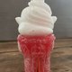 涼爽的貓軟冰淇淋完美地裝入蛋筒中。