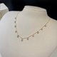 以18K金為主鏈,垂墜排列小尺寸天然珍珠,如晨光中落下的水滴,或羽毛擦過鎖骨的瞬間。