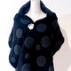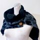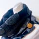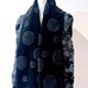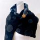 這件作品的布料觸感非常溫暖而柔軟扎實,正如其名,是來自於設計師喜愛的日本。輕盈的毛料是灰色底,佈滿了黑色與灰階的蝴蝶結,俏皮可愛又充滿了成熟的大人風味。另一面則是像冬天客廳裡,被電暖器烘得暖呼呼的毯子一般,紮實又蓬鬆的黑底灰色大波點布料,譜出溫暖又浪漫的氛圍。末端點綴著猶如星星般流光閃爍的青金色大型塑料釦,更達到畫龍點睛的效果。