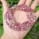 長寶石鍊身優雅細膩環繞胸前,色調**紅、粉、紫、白氤氳和諧,奼紫嫣紅**,展現女性霸氣、柔美、華麗浪漫之情。