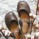 - 鞋底採用西班牙優質天然橡膠製成。每一步都緊貼腳形,確保走起路來舒適自在,而且穿久了也不會移位或變形。