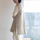 表地はオーガニックコットンにヤクのうぶげ(黒色)を7%混合した、淡いグレー色のあたたかいスウェットガーゼ生地、裏地はオーガニックコットン100%の起毛布でとても柔らかで温かいです。