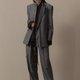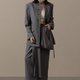 灰與深灰 撞色設計 中山西裝 復古中性 綁帶西服外套