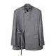 VAPOURBLUE 灰與深灰 撞色設計 中山西裝 復古中性 綁帶西服外套