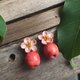 •材質: 316L不鏽鋼針|黃銅耳夾|陶 • 尺寸:總長約2.7cm,蘋果寬約1cm、花寬約1.5cm