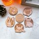Each coaster is made from high-quality wood, carefully sanded, painted, and sealed for lasting durability. Measuring approximately 9 cm (3.6") in diameter, these coasters are sturdy yet lightweight, ideal for daily use. Their smooth finish ensures your furniture stays safe from heat, moisture, and scratches.
