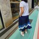 藍白分明的山形絞,有著大器的果決風格,每個90度的轉折,對花要求到位,都是巧思加上設計師一針一線手作完成的原創!