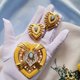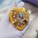 "Heart of Hollywood" 胸針/耳環套組,奶油淡黃色琺瑯外框與人造珍珠水鑽結合,中間人造火焰蛋白石很耀眼,啞光金屬讓整體質感度提升,很美的一套。隨著這位巨星的去世她設計的這一系列的珠寶也水漲船高,依據伊麗莎白·泰勒(Elizabeth Taylor)當時的說法,她的珠寶標誌著她一生中最重要的事件。這些是她對親愛的人的愛和尊重的特殊標誌。泰勒(Taylor)做珠寶是有原因的。每個人都有一個浪漫的故事,他們都是在重大事件的影響下創作的,而這些事件以某種方式影響了這位神奇女子的生活。