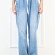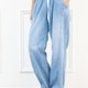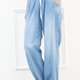 織帶抽繩牛仔直筒寬褲 藍色 - 女長褲 - 其他材質 藍色