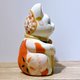 招財貓表面使用花結晶釉,展現出獨特的結晶效果,增添了藝術感和層次感。釉面光滑,透出自然的光澤,使整體看起來更具質感。清水燒的招財貓不僅是家居裝飾品,更是一件高雅的藝術品,展示了精湛的工藝技術和文化內涵。