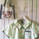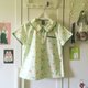 Cute handmade Japanese thick fabric (canvas) Green Goldfish blouse / shirt