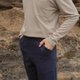 熱水定型|為了減少環境汙染及肌膚過敏,以熱水定型取代化學藥劑,盡量減少在在衣物中彈性纖維的用量,減少衣著對人體的束縛。對於舒適度的注重,讓和諧的布料有一股自然的生命力。