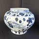 此罐直口、短頸、豐肩、鼓腹,腹部下方漸內斂,里外均施釉,外觀穩健莊重大氣,罐壁較厚,底露胎不施釉,為元代特有的修足方式。 罐身繪四條大魚及許多小魚悠游穿梭在田字草、銅錢草與槐葉蘋等各類水生植物之間。青花魚藻紋圖案自元代以來盛行,到了明嘉靖時期,魚藻紋筆法細緻、描繪生動的風格則更為世人肯定。鯖、鮊、鯉、鱖四種魚類有「清白廉潔」的吉祥諧音意,是民間流行的四字吉言下的寫照。
