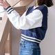 『雙11限定福袋』秋裝穿搭2件組專屬優惠—身穿拼色短版大學T,手提茄芷小提袋,復古時尚!