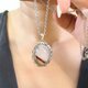 帶藍光玉隨,稀有瑪瑙共生,特殊寶石生成,獨一無二,不同角度都有水潤光澤,搭配手工墜台,突顯配戴者氣質與質感。