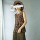 尋寶古著-深棕色佩斯利變形蟲網紗不規則剪裁背心