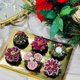 以典雅金色禮裝為底,搭配 全透明展示盒 呈現六顆手工打造的花藝杯子蛋糕。