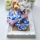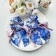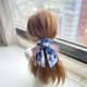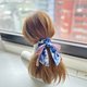 使用美國品牌棉布搭配製作成長尾蝴蝶結、加上緞帶和釘珠做成的髮圈,氣質浪漫,無論上班或休閒聚會都適合配戴。