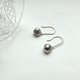 明るめシルバーグリーンのパールが、小さく揺れるピアスです。