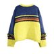 発色の良いビビットなカラーを混ぜたマルチボーダーに、フロントと袖にはカラフルなナイジェリアの生地とチュールを重ねたフリルを装飾しているので、他にはない華やかで可愛らしいニットプルオーバーです。