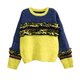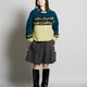 ブークレニットに柄とチュールを重ねたフリルを施したニットプルオーバー。