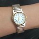 〓ANNE KLEIN II 銀+金錶殼•彈性伸縮錶帶式石英錶