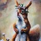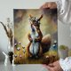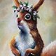 The unique painting of a cute squirrel with a flower wreath was painted with professional acrylic paints on a stretched cotton canvas. One of a kind. This whimsical artwork is very detailed, forest-like, and filled with a wildlife spirit. It will bring an enchanted forest atmosphere to Home. Great gift for a nature and animal lover.