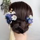 - 這款古著摘み細工髮飾套組,結合__復古韻味__與現代摩登。柔和的藍色、白色及淡紫色,為您的傳統裝扮增添高雅感,同時自然融入現代風格。適合婚禮、成人式、七五三及畢業典禮使用。