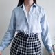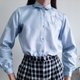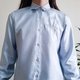復古淡藍色刺繡襯衫,浪漫簡約襯衫