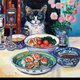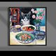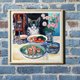 The Black Cat about a table Painting Original Art Oil Painting Oil On Cardboard 30by30sm