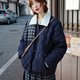 - 拼接絎縫羽絨服,寬松繭型設計,簡約不簡單的剪裁,短衣身廓形,下擺可調節牛筋繩,藏青色實物顏色沉靜耐看,承載冬藏的淡然安逸,撞色領子、口袋拉筒設計,衣身格紋拼接,休閑復古感滿滿,豐富視覺效果。羽絨服帶來兼顧溫度與個性的御寒體驗。