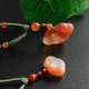 寶寶鏈,媽媽鏈或親子鏈自行選擇,可根據寶寶要求客製各部份長度。天然南紅保山料手工雕刻祥云如意鎖,手工工藝編制項鏈,磨砂工藝柔光質感的保山柿子紅色冰飄南紅,雕琢成胖乎乎的祥云如意鎖,透光是如冰與云霧般的質感。搭配南紅小圓珠與翡翠小圓珠,鏈尾採用保山料做一鳴驚人的雕刻件。