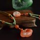 天然保山料柿子紅南紅,如霧一般的磨砂工藝柔光質感,色澤明豔,飄逸唯美,造型古樸典雅,胖乎乎的祥云如意鎖,滿含福氣與吉祥,一大一小兩款,小款製成寶寶鏈,大款可做媽媽鏈,也可改製成寶寶鏈,可根據需要自行選擇,小款荔枝凍底,難能可貴的沒有一點點紋裂與綹裂。搭配天然南紅圓珠,搭配天然南紅圓珠做鏈首,南紅圓珠與翡翠圓珠做鏈身,鏈尾採用保山南紅鳴蟬雕刻件。如意吉祥如意,鎖有鎖福鎖吉祥的意義,祥云有繁榮與成功的意義,鳴蟬有一鳴驚人之意。整體清雅古典,明媚大方,寓意美好吉祥。