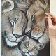 "The main thing is love. The family of Lions" - oil pastel on paper. Original work with oil pastels. Author Kokorina Nadezhda.