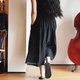 黑色豎條紋褶皺肌理面料 / 100%棉
