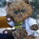 Face and paws are made of polymer clay and colored with pastels. Face is covered with faux fur.
