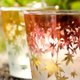 グラスに飲み物を注げば紅葉も揺らぎ非常に風流です。