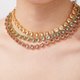 清澈剔透的人造黃寶石,綠寶石和紫寶石,搭配珠寶的切割面及鑲嵌方式。折射出不同切面的光芒。閃耀奪目。