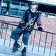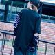 袖子與下擺有大面積的割破布料搭配條紋撞色