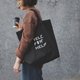 字體白墨印刷仿舊感設計,看得到帆布材質紋理和不規則色塊為正常現象