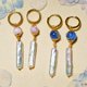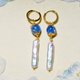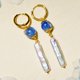 - 材料:天然藍水晶、天然淡水珍珠、14K包金繞線及配件、鈦鋼鍍18K配件 藍水晶大小:8.4-8.8mm 珍珠大小:5X23mm 耳環長度:6cm