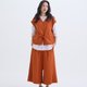 - ・橘色 ・後鬆緊帶 ・寬褲設計,版型友善 ・側邊花邊設計 ・96%Cotton ・製造地:臺灣製 模特兒身型參考 VIKI 身高161cm體重47kg